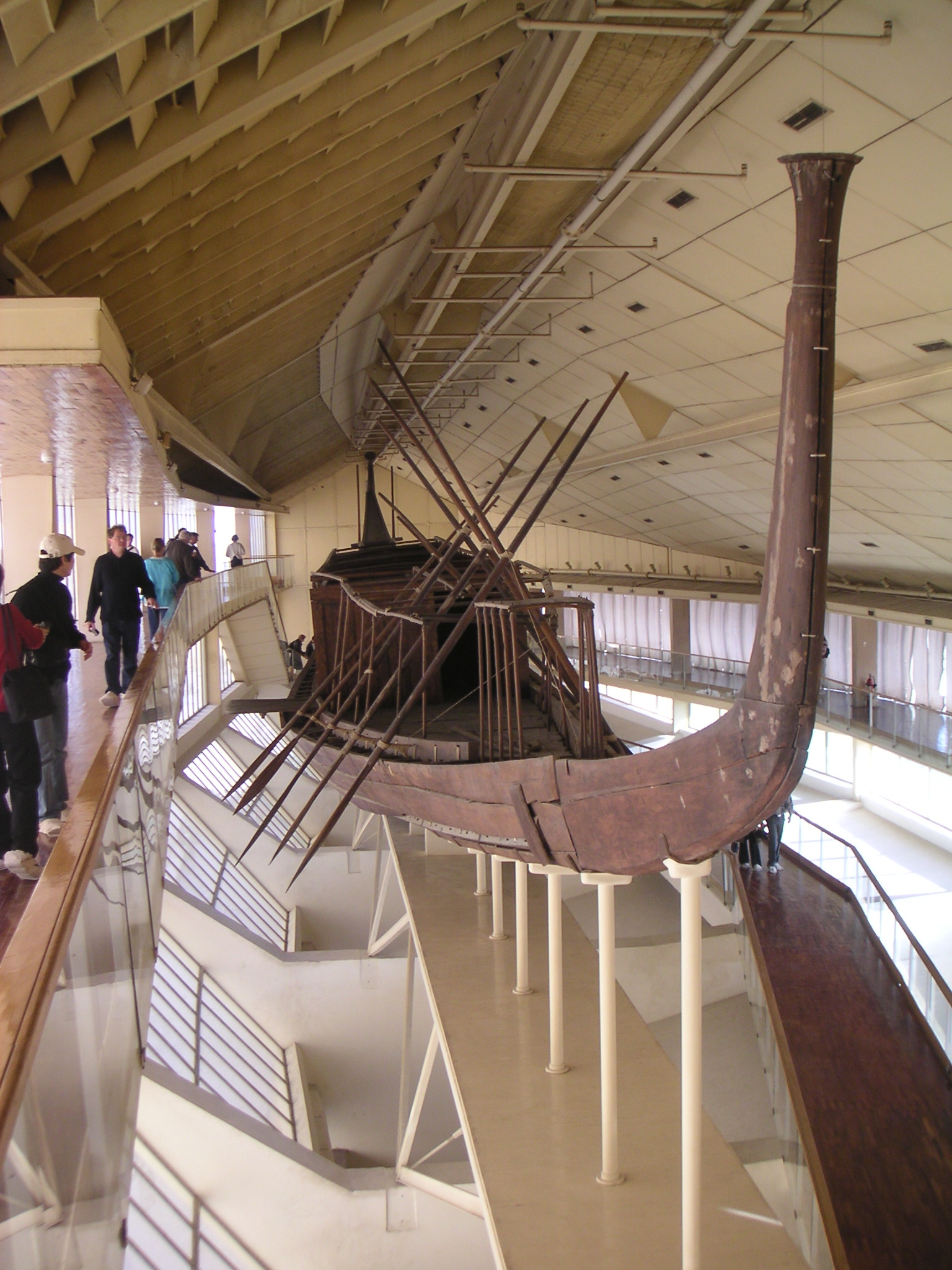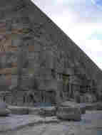 The "Pyramids" are situated on the desert plateau which marks the boundary of the vast urban complex of Giza (pronounced with a hard "g"), which is in fact a suburb of Cairo. Today there is a tendency to refer to the "Pyramids of Giza" even though the Egyptian name for the site is ElAhram ("the Pyramids"), a name which was also used by Western visitors prior to the meteoric rise of the village of Giza. Although the site extends beyond the plateau of Giza and despite the fact that there are many other pyramids in the Libyan Desert (in an area extending from Abu Rawash in the north to Lisht in the south), the exclusivity of the name is justified by the sheer magnificence of these three pyramids, which have been renowned since classical antiquity and even from the time of the Ancient Egyptians. The pyramids are in fact the tombs of three 4th-Dynasty pharaohs: Khufu (Cheops in Greek), Khafre (Chephren) and Menkaure (Mycerinus). The Egyptian pyramids, from the Pyramid of Khufu (an unrivaled architectural masterpiece) to the more modest pyramids belonging to less powerful or less ambitious pharaohs, were tombs reserved for the pharaohs of the Old Kingdom (3rd-6th Dynasties) and part of the Middle Kingdom (11th & 12th Dynasties) and their queens. They are the principal element of a large architectural complex which, in addition to the actual pyramid, consisted of a funerary or "upper" temple, a small pyramid or "annex" (of religious or symbolic significance), and a causeway leading to a valley or "lower" temple which stood at the foot of the plateau, on the edge of the desert, and was linked to the Nile by a dock and a canal. The perfect and to some extent elementary design of the Pyramids of Giza in particular was the product of a long process which took place over several centuries incorporating various stages of development: superposed mastabas and the so-called "step" pyramids. The form of the monument also has several levels of symbolic significance. The pyramid was in fact the means by which the dead pharaoh rose to the firmament and joined the sun, far from the shadows of the tomb. It was also seen as an emanation of this heavenly body, the mineral concretization of the sun's rays. These are only two interpretations from an entire spectrum of symbolic images that the Ancient Egyptians associated with the pyramid. In spite of the many remaining obscurities (a situation which is not helped by the lack of any pre-5th Dynasty inscriptions in these sometimes gigantic monuments), there is still sufficient information to identify the occupants of the pyramids, even though most traces of them and their funeral paraphernalia have long since disappeared from the monuments they commissioned. The Pyramid of Khufu is 755 feet square at its base, was originally 482 feet high (it lost 33 feet when the apex was removed) and has a total superposed volume (assuming it were solid) of about 88 million cubic feet. According to tradition the entrance was on the north side and the corridors were aligned with the circumpolar stars ever present on the horizon to ensure immortality. The present entrance, lower than the original entrance, is linked by a passageway to the "real" access corridor. There is "nothing to see" in the pyramid apart from the pyramid itself, whose interior construction and remarkable atmosphere (although the stale air can sometimes be tiring) make it a true architectural masterpiece. The so-called "Solar Barque" is preserved in an unprepossessing building, on the south side of the pyramid, above the 100-foot boat pit in which it was discovered, completely dismantled, in 1954. It took several years to restore the 140-foot, cedar-wood barque to its original elegance, complete with cabin and long oars. All the elements are joined with ropes and pegs, with not a nail in sight. The significance of such grandiose vessels is still the subject of much discussion. They may have actually been used, in particular for the king's funeral, or they may have been a representation of the Night- and Day-Barques of the Sun: a promise of immortality or at least of resurrection. Near the Pyramid of Khufu are two other monuments which, although they cannot be visited and are relatively unattractive, form part of the history of the site. Although the pyramid of Khafre (Chephren) is not quite as big (originally over 470 feet high, today over 446 feet) as his father's, it is nonetheless a striking sight with its white "cap" at the apex, the remains of the dazzling limestone casing which once completely covered the pyramids of both Khufu and Khafre. The interior is less complicated but just as impressive as that of Khufu. The Pyramid of Khafre, however, is renowned not so much just for itself but for the entire pyramidal complex: the partly preserved ascending causeway (descending if you approach it from the pyramid) and, lower down, at the entrance to the valley (where there is now a Sound and Light Auditorium), the impressive and extremely well-preserved valley or "lower" temple. Abu Hol, the Great Sphinx, which has become indissociably linked with the Pyramids, is also a "must" for all visitors to Egypt. The Sphinx of Giza was undoubtedly carved out of a rocky spur which suggested its shape. Although it has long been the victim of erosion, and damage from upsurges of underground water, it has been cleared of sand and restored several times since antiquity, and remains one of the undisputed wonders of a civilization renowned for its architectural achievements. This colossus of Khafre (240 feet long and 65 feet high) is both the guardian and symbol of royalty. Other meanings have been attributed to it over the ages. During the New Kingdom it was seen as a representation of Re-Harakhti, the falcon-headed sun god, or Horem-Akhet (Horns on the Horizon, Harmachis in Greek), whom everyone came to worship and entreat. Young princes raised in Memphis came here either to meditate upon the concept of power or in search of l